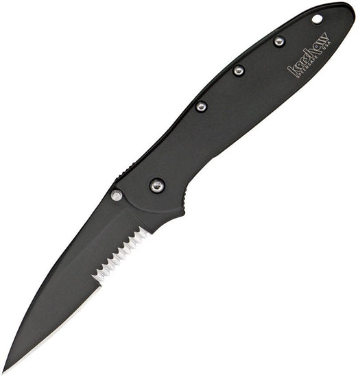 KERSHAW LEEK FRAMELOCK A/O SECOND BLACK BLADE BLACK HANDLE SERRATED