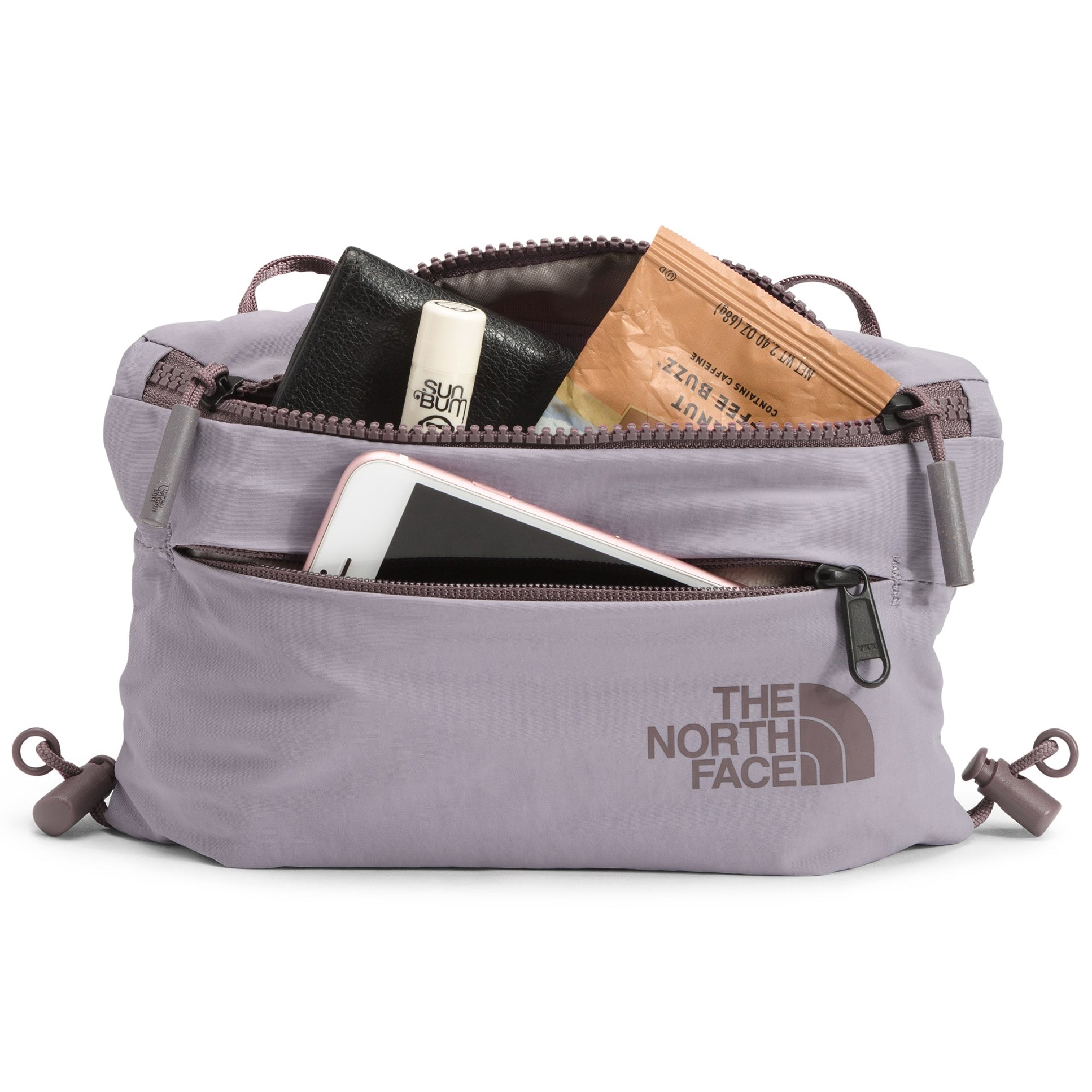 - External, fleece-lined, secure-zip pocket on back holds smaller items